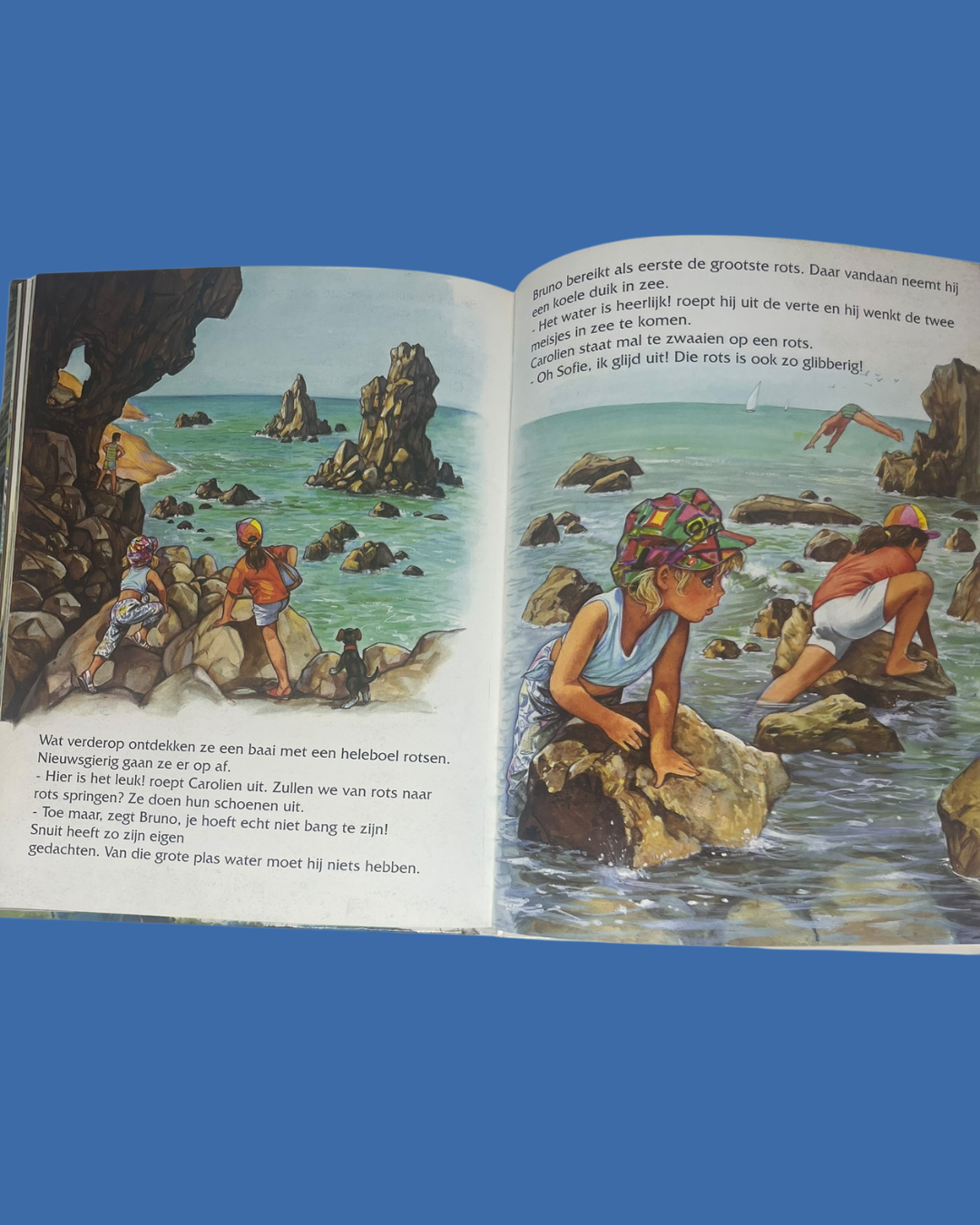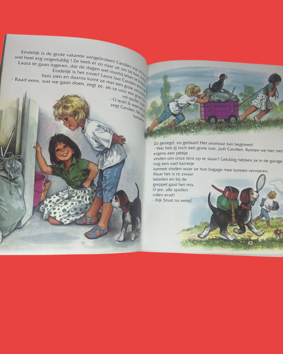"Twee blonde staartjes, grote glimmende ogen en een schattig gezichtje: dat is ons vriendinnetje Carolien. Ze is zes jaar en zit boordvol leven. Wil je kennis met haar maken? Sla dan snel dit album open en ga met haar op avontuur."