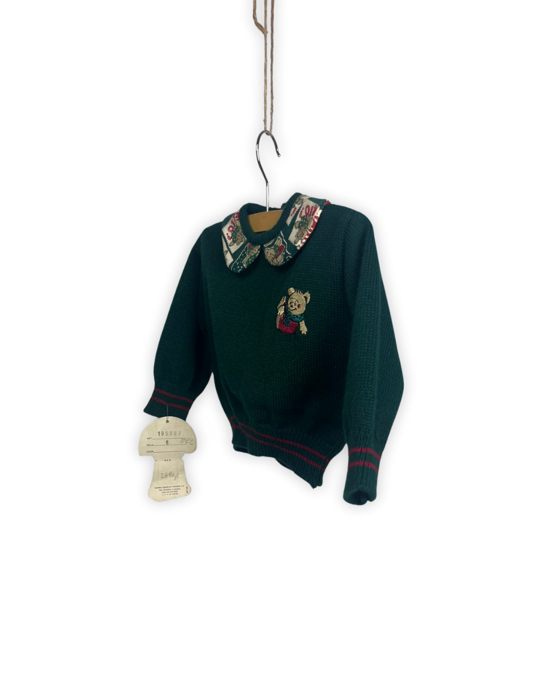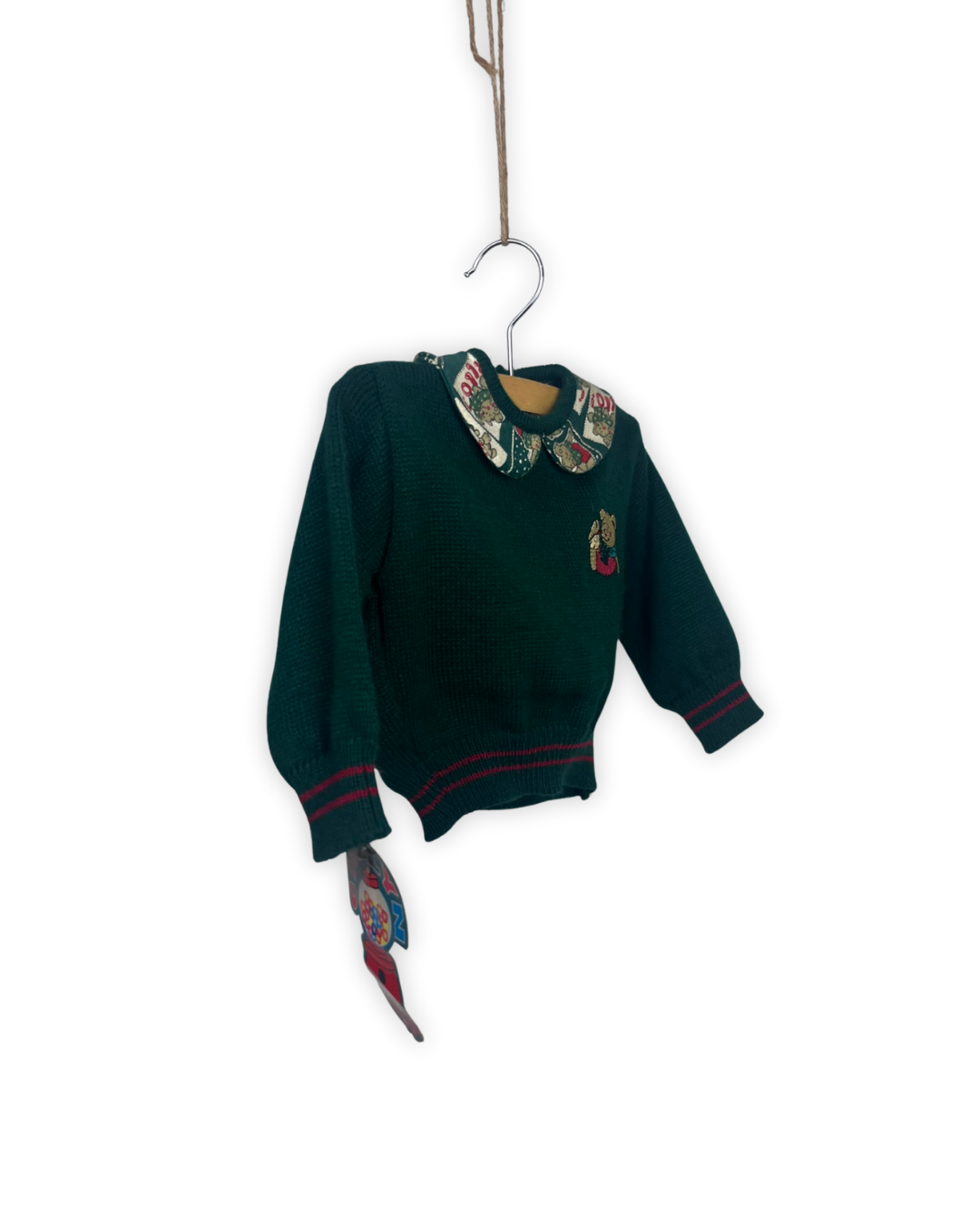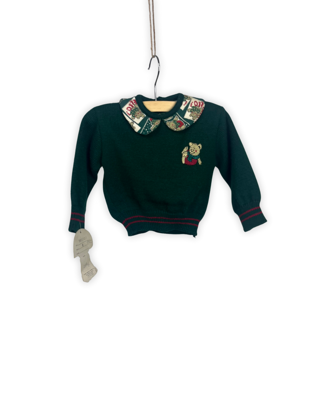 Donker groen gebreid truitje met vintage kolletje maat 6m