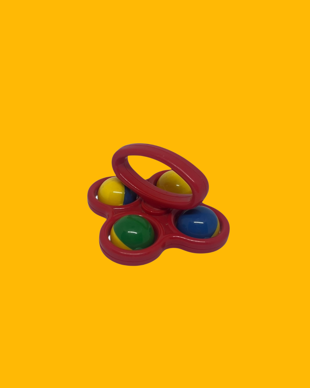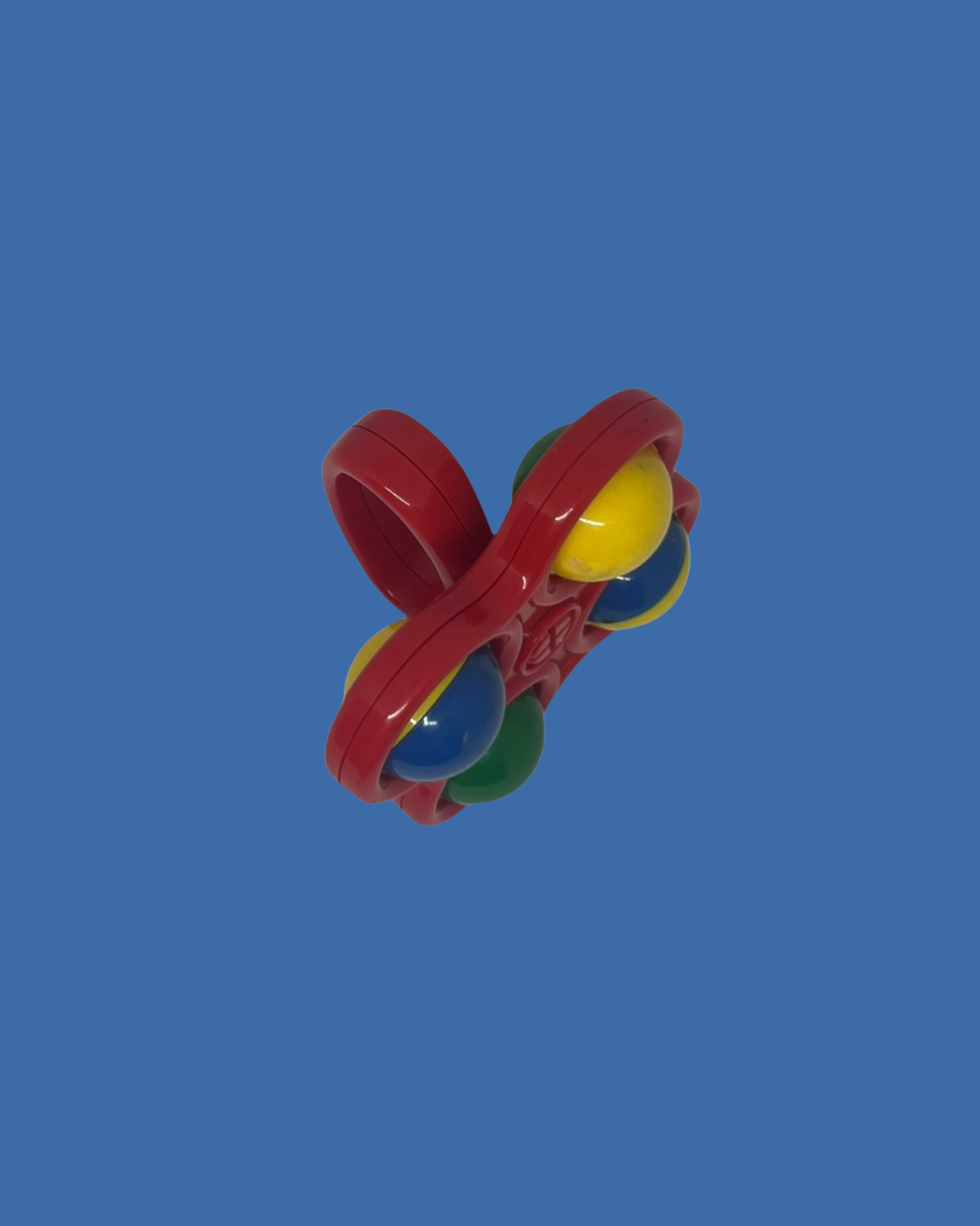 Rammelaar met 4 gekleurde balletjes.