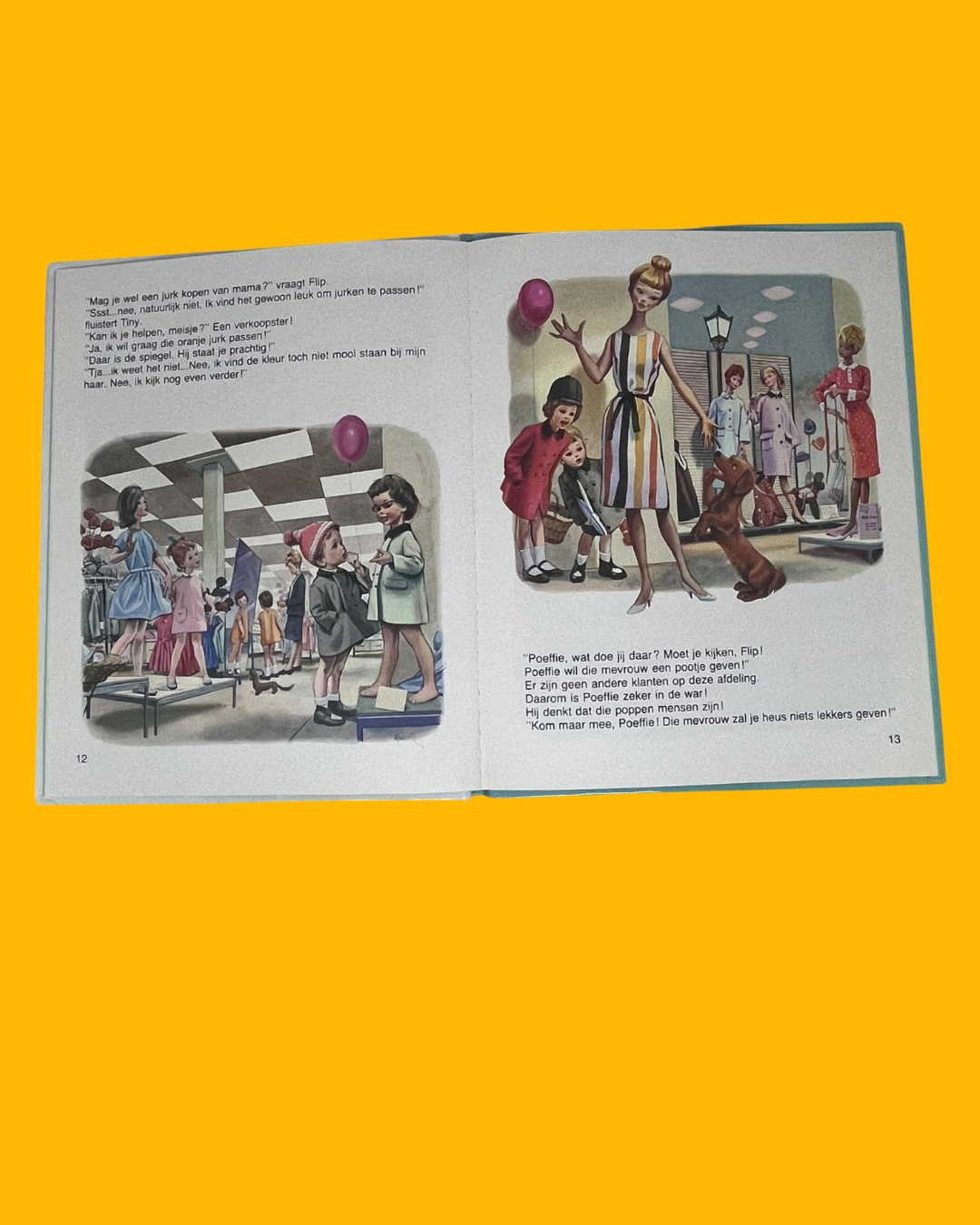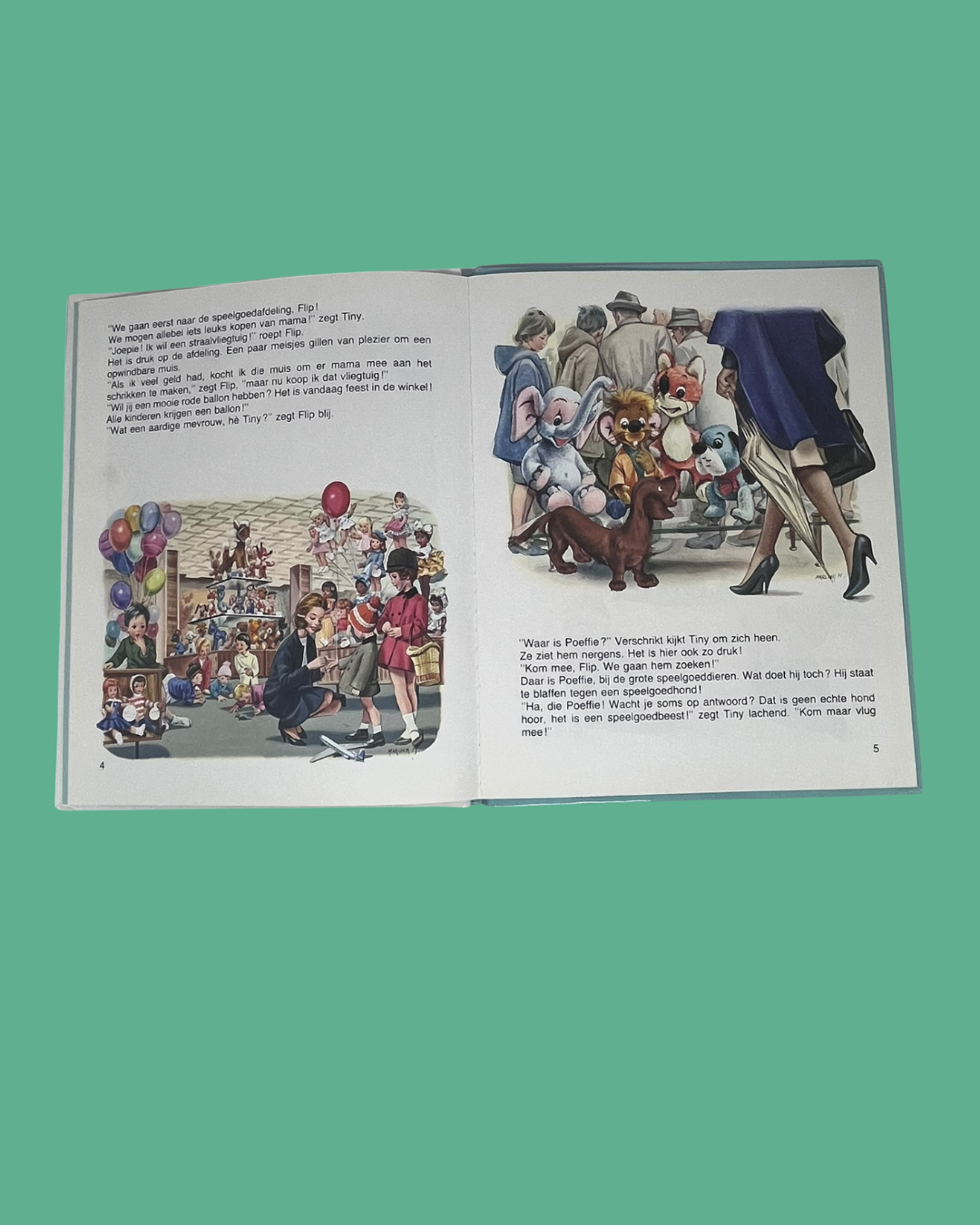 Boek met harde kaft, dat al behoorlijk is gelezen, maar het verhaal heeft de schattigste tekeningen uit de goeie ouwe tijd.