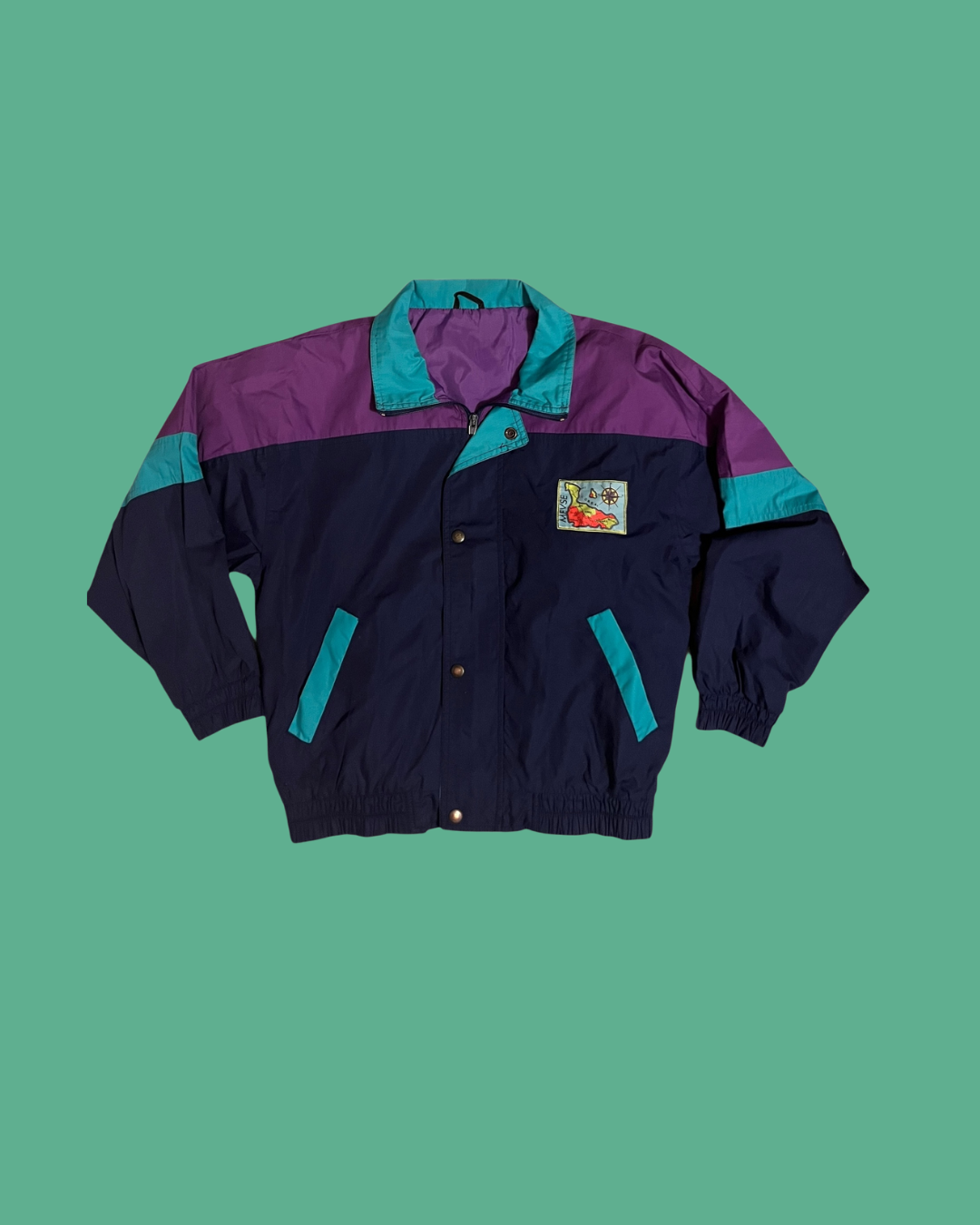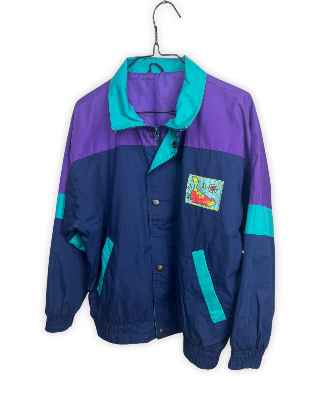 vintage oversized trainingsjasje met leuke colorblocking kleuren.